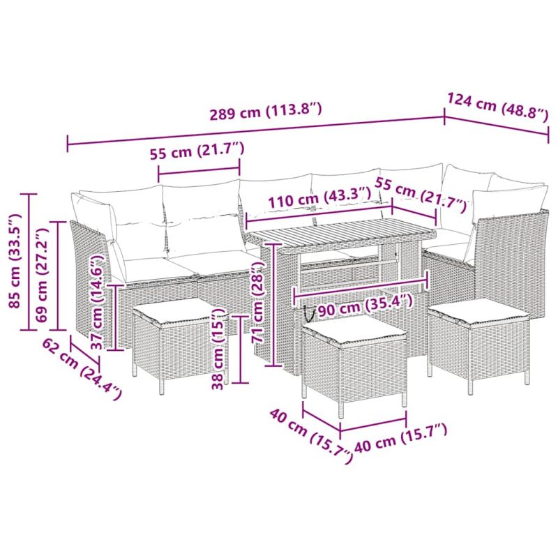 Този стилен комплект градински диван съчетава модерен вид с практичен дизайн, създавайки уютно място за релаксация и социализиране навън. Неговият прост, съвременен стил, заедно с меките тъкани, идеално подхожда на всяка градина или тераса. Страхотен е за впечатляване, предлага достатъчно места за срещи или време за уединение, което ти дава както стил, така и комфорт за незабравими пролетни и летни дни. Материали: Комплектът диван е изработен от полиратан и прахово боядисана стомана, придавайки му здрав, но елегантен вид. Проектиран е да издържи на променящите се сезони и да изглежда стилно, предлагащ отличен избор за градинска мебел. Полиратанът добавя приятно текстурирано излъчване, докато стоманената рамка осигурява стабилност. Включени компоненти: Този комплект идва с удобни части, като полиратанови подлакътници и малки повърхности от прекрасна акациева дървесина. Прахово боядисаната стоманена рамка държи всичко стабилно, докато акациевото дърво внася топло, естествено усещане. Завършен е с водоотблъскващи възглавници за максимален комфорт. Характеристики / Функции / Дизайн: Диванът е създаден за открити пространства с UV-устойчиви материали, които могат да издържат на слънчевите дни. Сменяемите възглавници улесняват почистването и поддържат нещата свежи с времето. Плоските полиратанови подлакътници и елегантните линии акцентират на съвременния стил. Препоръчителни употреби: Идеален за градини, тераси и открити пространства, този комплект диван перфектно се вписва в различни среди. Простият му дизайн го прави чудесен избор за открито почивка, развлечение или просто наслада от мира на природата. Грижа и поддръжка: За да изглежда страхотно, комплектът изисква малко рутинна грижа. Покривай го с водонепропускливо покритие, когато не го използваш, и просто избърсвай с влажна кърпа, за да премахнеш мръсотия или влага. Тези прости стъпки помагат да остане издръжлив и с свеж вид.