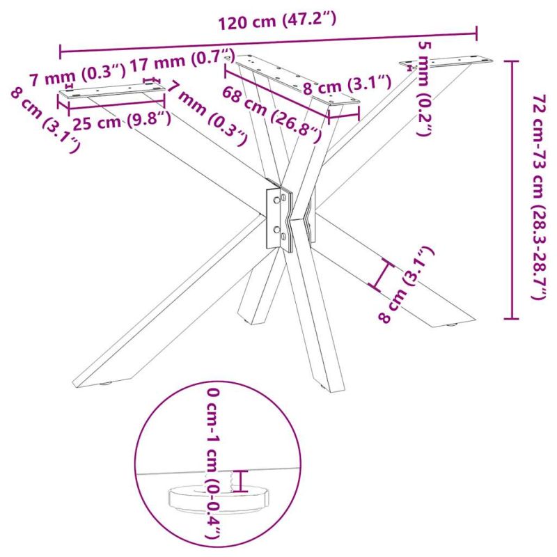 Този крак за маса за хранене съчетава форма и функция. Той е идеален избор за персонализиране на вашата маса за хранене. Издръжлив материал: Този метален крак за маса е изработен от прахово боядисана стомана, което го прави здрав и дълготраен.Здрава конструкция: Паякообразният дизайн на крака за мебелна маса гарантира, че той може да поддържа тежък плот.Практичен дизайн: Този крак за бюро включва регулируеми нивелири, осигуряващи стабилност дори на неравни подове и минимизиращи драскотините по пода. Освен това, скобата е с предварително пробити отвори и включени в доставката винтове, които могат да се използват за закрепване на крака към плота на масата (не са включени), което улеснява сглобяването.Модерна естетика: Кракът на масата има изчистени линии и геометричен дизайн, за да подобри цялостния вид на мебелите. И се съчетава добре с всеки плот за маса с подходящ размер. Полезно е да знаете:Доставката съдържа само крака за маса, плотът не е включен.