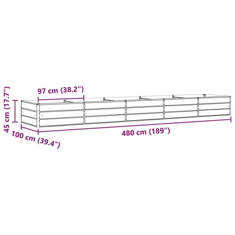 Тази цветна стоманена саксия е чудесен начин да добавите модерен шик към градината или терасата. Изработена от поцинкована стомана, тя е и здрава, и стилна, готова да устои на времето. С достатъчно пространство за различни растения, любителите на зеленината могат да покажат своята креативност. Независимо дали е на патията или в градинския ъгъл, тя ще направи обстановката по-привлекателна. Премиум стоманена конструкция: Страхотна за дълготрайност и устойчива на климатични условия. Поцинкованата стомана не просто изглежда невероятно, а е и супер издръжлива - идеална за външна употреба с години напред! Сценичен изглед: Предоставя пространство, където вашите растения могат да процъфтяват. Тя е подходяща за разнообразие от растения – от декоративни треви до цветя. С нея можете да експериментирате с различни аранжименти. Лесно сглобяване: Просто използвайте отвертка! Всичко е проектирано с удобство на ум, така че можете бързо да я вкарате в пространството си. Изисква се само един човек за сглобяване, за да е всичко стабилно. Специално за открито: Създадена за открити пространства, тя е страхотно централно парче за патии, палуби или градини. Подходяща е за хора, които искат да се насладят на природата или да развлекат приятели навън. Лесна поддръжка: Просто я бършете с вода и сапун, за да я запазите свежа. Проектирана така, че да не изисква много грижи, тя е прекрасен и практичен избор за вашия открит декор.