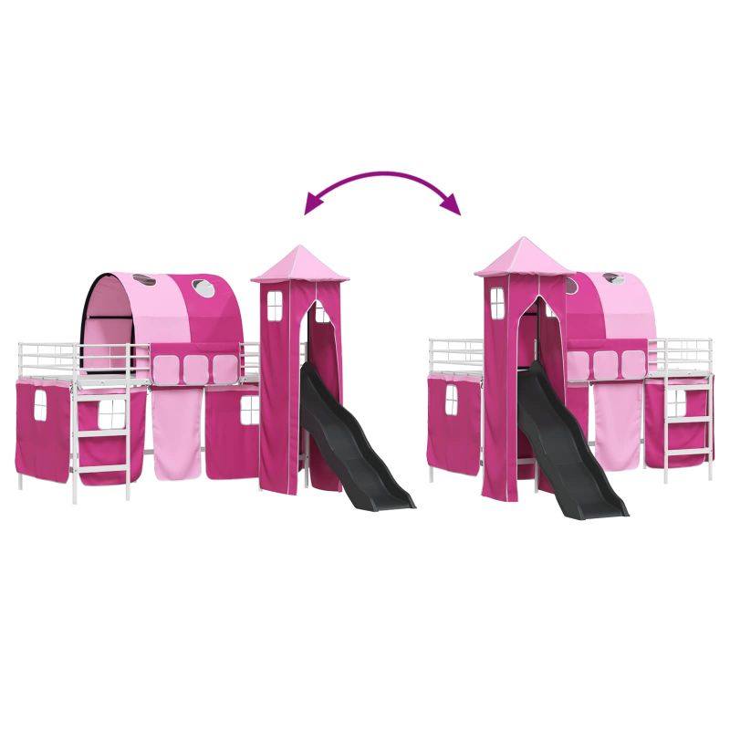 Легло на двуетажно легло за деца Бяло и розово 99,5 x 200 см