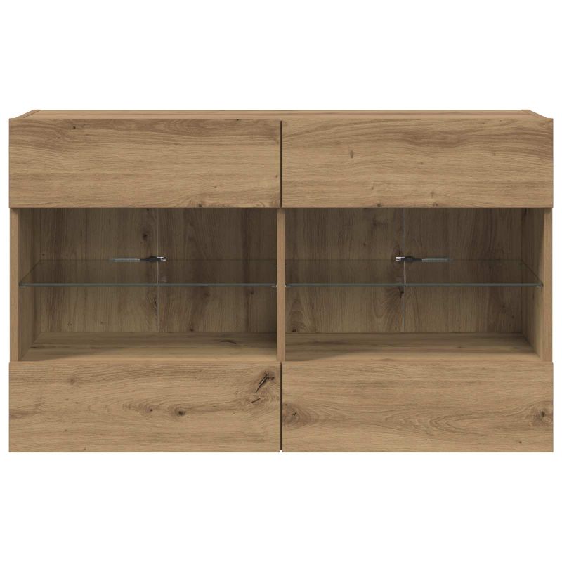 Този LED ТВ стелаж за стена е тотален хит, който комбинира функционалност с минималистичен стил. Перфектен е за всяка модерна всекидневна с правоъгълната си форма. Направен от здраво инженерна дървесина, оставя много място на пода и добавя елегантност. Многоцветните LED светлини създават уникална атмосфера, която се настройва по настроение. Изградена от инженерна дървесина: Направен от здрави материали, този шкаф е устойчив и красив, идеален за дълготрайна употреба. LED ленти: С гъвкави многоцветни LED ленти, той добавя уникално осветление и отлично настроение за вечерните филми. Дизайн с монтаж на стена: Идеален за минималистични пространства, спестява място и дава чист вид на стаята. Достъп с панти: Практичните врати с панти осигуряват лесен достъп до компонентите, докато запазват стилното задание на хола. ИЗИСКВАНИЯ ЗА СЪБИРАНЕ: Сглобяването веднага изисква двама души и отвертка, за да подсигурите стабилността и правилния монтаж на стената.