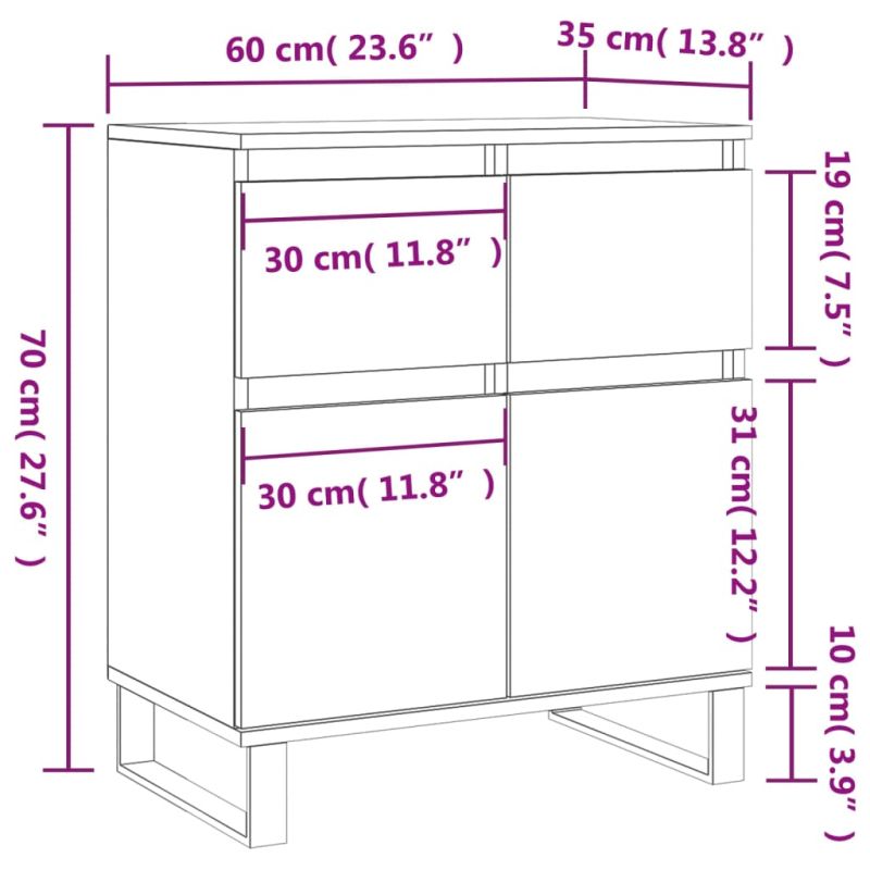 Този модерен сайдборд, отличаващ се с непреходен външен вид, е предназначен да бъде отлично допълнение към вашия дом. Издържлив материал: Инженерната дървесина е с изключително качество с гладка повърхност и също така се отличава със здравина, стабилност и устойчивост на влага. Изработен от инженерно дърво, шкафът за съхранение се почиства лесно с влажна кърпа.Достатъчно място за съхранение: Бюфетът предоставя достатъчно място за съхранение, където да държите различни ваши вещи добре организирани и леснодостъпни.Декоративна функция: Горната част на сайдборда е идеална за излагане на вашите декоративни елементи, рамки за картини и саксийни растения.Железни крака: Железните крака на страничния шкаф осигуряват здравина и стабилност. Внимание:За предотвратяване на преобръщане този продукт трябва да се използва с предоставения анкер за стена.