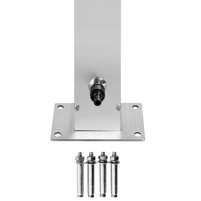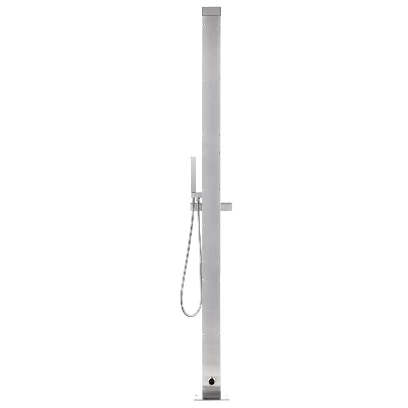 Този градински душ с модерен дизайн е предназначен да бъде чудесно допълнение към вашия басейн и други открити жилищни площи. Този външен душ е изработен от неръждаема стомана, което го прави устойчив на атмосферни влияния. Душ системата разполага с душ глава, ръчен душ и смесител за измиване на краката, за да отговори на нуждите ви за градинарство, поливане и бързо вземане на душ. Маркучът с двойно заключване е гъвкав и предназначен за ръчен душ. Освен това е оборудван с пластмасов държач за ръчен душ и рафт за лесно окачване на водния маркуч. Издръжливото и устойчиво на корозия душ-корито е изработено от първокласен WPC материал с рамка от неръждаема стомана в матов финиш, което гарантира издръжливост за дълги години употреба. Освен това предлага най-високо ниво на хигиенна защита, което го прави идеален за вашето външно пространство. Благодарение на своята здравина и гъвкавост, душ-коритото може да служи и като основа за стълба за басейн. Потопете се в истински релаксиращо душ преживяване и се насладете на модерния стил на тази външна душ система!