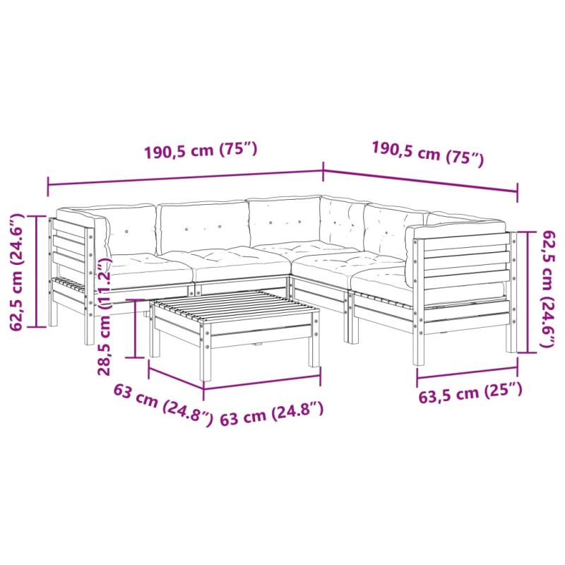 Градински комплект 6 части с възглавници импрегниран бор