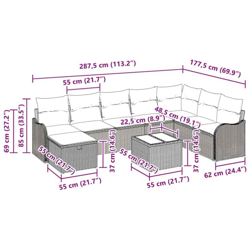 Комплект дивани с възглавница 9 pcs Сив полиратан