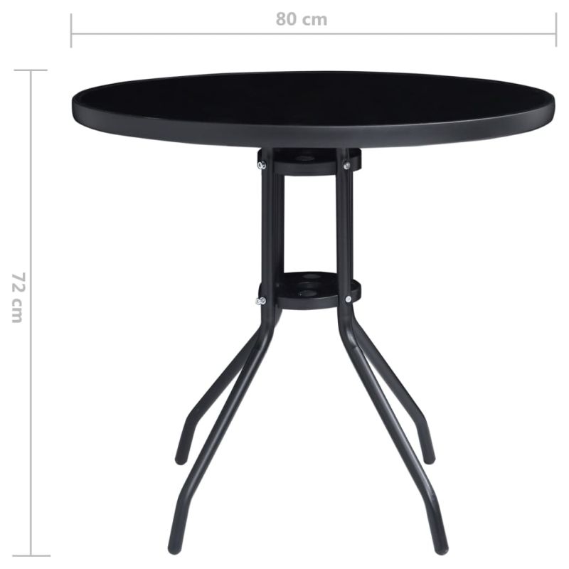 Този бистро комплект има стилен и неостаряващ дизайн, и осигурява удобно място за сядане в градината или във вътрешния двор. Прахово-боядисаната алуминиева рамка прави креслата много здрави и издръжливи. Градинските столове имат мек на допир, устойчив на атмосферни влияния плот от textilene и могат да се регулират в 7 позиции, така че винаги можете да намерите най-удобната позиция за сядане. Изработена от стомана и стъкло, масата е добре проектирана и е идеална за поставяне на храна, напитки или дори саксийни растения. Освен това се почиства лесно с влажна кърпа. Забележка: За да удължите живота на вашите градински мебели, препоръчваме ви да ги почиствате редовно и да не ги оставяте ненужно на открито без защита.Почистване: Използвайте мек сапунен разтворСъхранение: Ако е възможно, съхранявайте на хладно и сухо място на закрито. Ако продуктът се съхранява на открито, защитете го с водоустойчиво покривало. Избършете и изсушете излишната вода или сняг от плоските повърхности след дъжд или снеговалеж. Позволете достатъчно циркулация на въздуха, за да избегнете повреди, свързани с влагата.