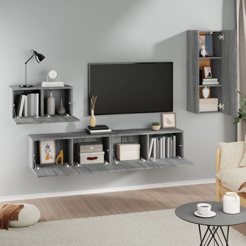 - Купете Комплект ТВ шкафове от 4 части, сив сонома, инженерно дърво или друг продукт от нашата промоционална секция за да получите 3% отстъпка.