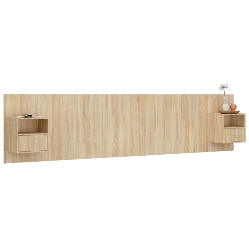 Горна табла за легло с шкафчета, дъб сонома, инженерно дърво