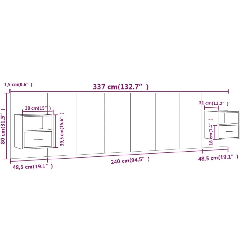 Здравата табла за легло с шкафчета и класически дизайн придава завършен вид на рамката на леглото и е подходяща за всяка спалня. Издържлив материал: Инженерната дървесина е с изключително качество с гладка повърхност и също така се отличава със здравина, стабилност и устойчивост на влага.Дизайн за стенен монтаж: Окачените нощни шкафчета и таблата могат да бъдат монтирани на стена. По този начин можете да увеличите максимално площта на пода и да поддържате пространството подредено.Място за съхранение: Нощното шкафче разполага с просторно място за съхранение, което ви позволява да държите нещата си организирани. Внимание:Винт(ове) и щепсел(и) за вътрешността на стената не са включени. Търсете и използвайте винт(ове) и дюбел(и), подходящи за вашите стени. Ако не сте сигурни, потърсете професионална помощ. Прочетете и следвайте внимателно всяка стъпка от инструкциите.