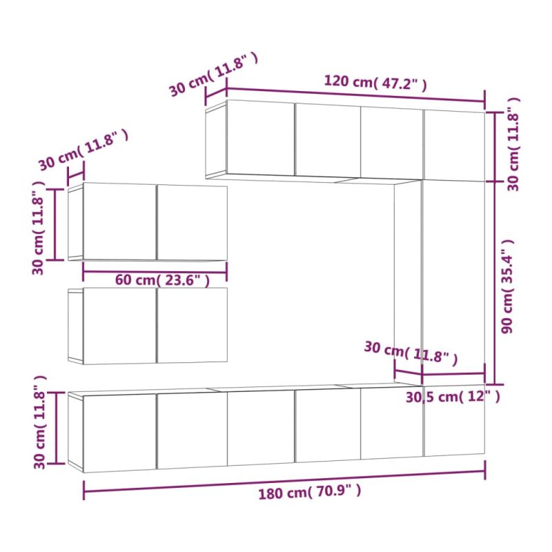 Комплект ТВ шкафове от 8 части, сив сонома, инженерно дърво