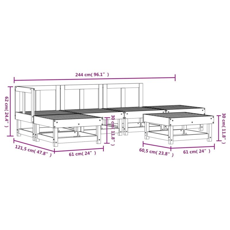Този дървен градински лаундж комплект, който се откроява с дизайн на летви, ще бъде чудесно допълнение към вашата градина, вътрешен двор или тераса, за да се насладите на уютно време със семейството или приятелите си. Импрегнирана дървесина: Масивната борова дървесина е красив естествен материал. Боровата дървесина е с продълговати шарки, а чеповете придават на материала характерния му рустик вид. Импрегнирането е процес на запазване, който се извършва с помощта на автоклави. Обработката под налягане повишава устойчивостта на гниене и атмосферни влияния.Здрава и стабилна рамка: Дървените рамки правят лаундж комплекта здрав и стабилен за ежедневна употреба на открито.Модулен дизайн: Комплектът мебели е гъвкав и лесен за преместване. Можете да я комбинирате с други модулни сегменти в уеб магазина, за да създадете свои лични конфигурации на градински лаундж комплект! Добре е да се знае:За да сте сигурни, че вашите външни мебели ще останат красиви, ви препоръчваме да ги защитите с водоустойчиво покривало.Възглавниците не са включени в доставката.
