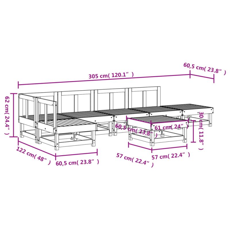 Този дървен градински лаундж комплект, който се откроява с дизайн на летви, ще бъде чудесно допълнение към вашата градина, вътрешен двор или тераса, за да се насладите на уютно време със семейството или приятелите си. Импрегнирана дървесина: Масивната борова дървесина е красив естествен материал. Боровата дървесина е с продълговати шарки, а чеповете придават на материала характерния му рустик вид. Импрегнирането е процес на запазване, който се извършва с помощта на автоклави. Обработката под налягане повишава устойчивостта на гниене и атмосферни влияния.Здрава и стабилна рамка: Дървените рамки правят лаундж комплекта здрав и стабилен за ежедневна употреба на открито.Модулен дизайн: Комплектът мебели е гъвкав и лесен за преместване. Можете да я комбинирате с други модулни сегменти в уеб магазина, за да създадете свои лични конфигурации на градински лаундж комплект! Добре е да се знае:За да сте сигурни, че вашите външни мебели ще останат красиви, ви препоръчваме да ги защитите с водоустойчиво покривало.Възглавниците не са включени в доставката.