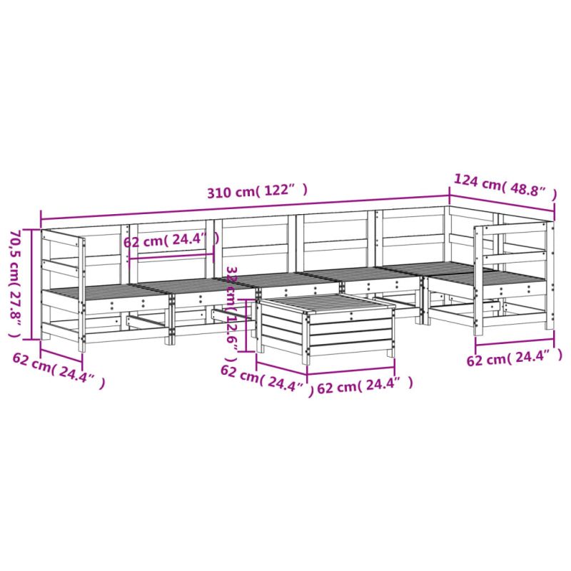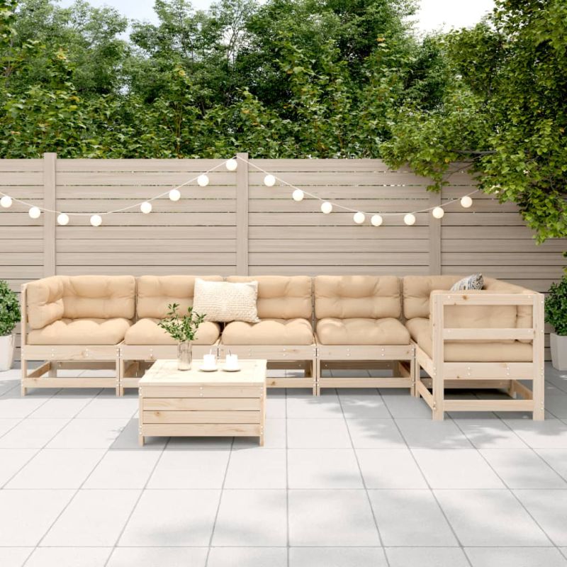Градински комплект диван от 7 части, масивно дърво бор