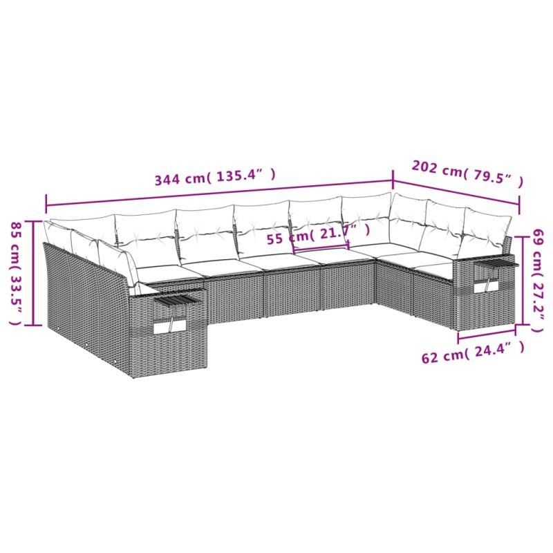 Градински комплект с възглавници, 10 части, светлосив полиратан
