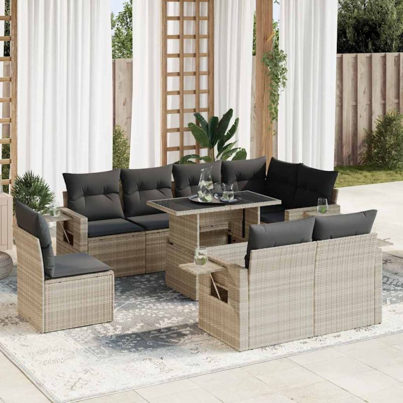 Начало Дом и градина Мебели Външни мебели Комплекти градински мебели Градински комплект с възглавници, 9 части, светлосив полиратан