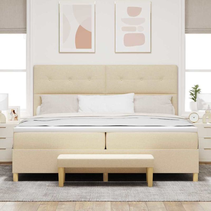Легло с пружинирана основа с матрак Крем 200 x 200 cm текстил