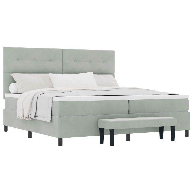 Легло с пружинирана основа Светлосиво 200 x 200 cm Кадифе