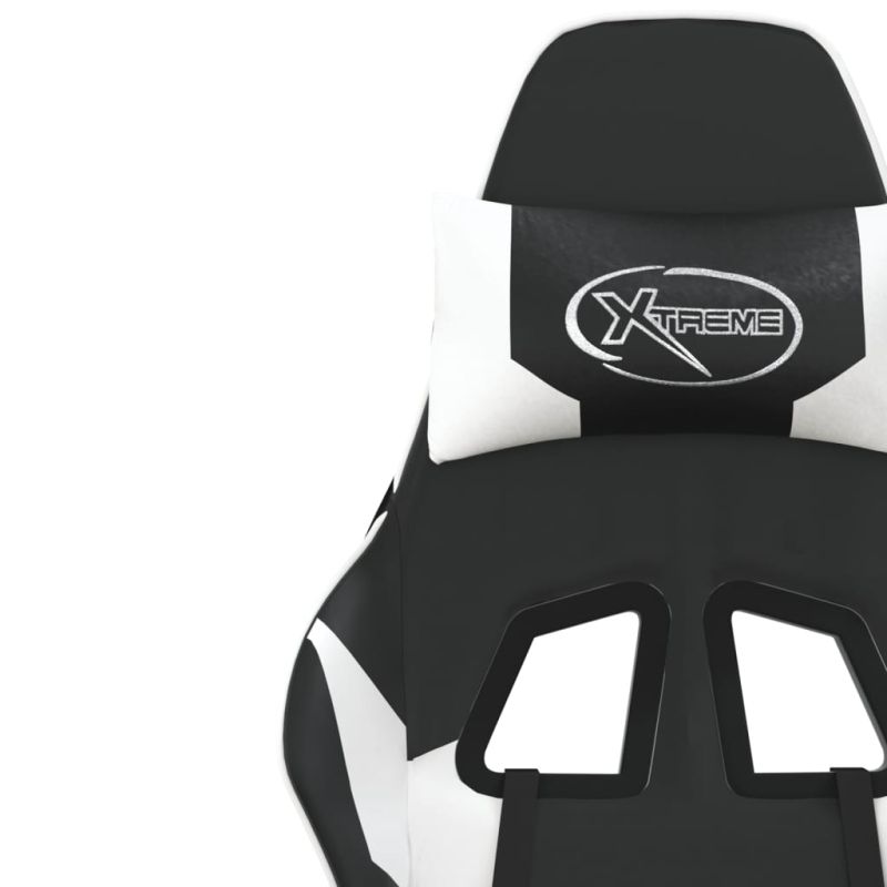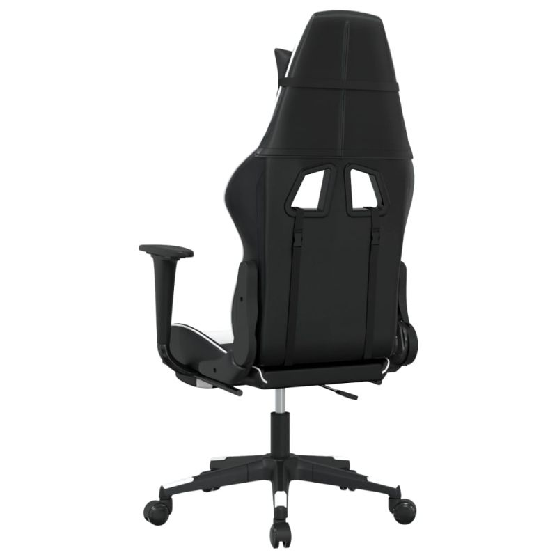 Масажен гейминг стол с опора за крака черно-бял изкуствена кожа