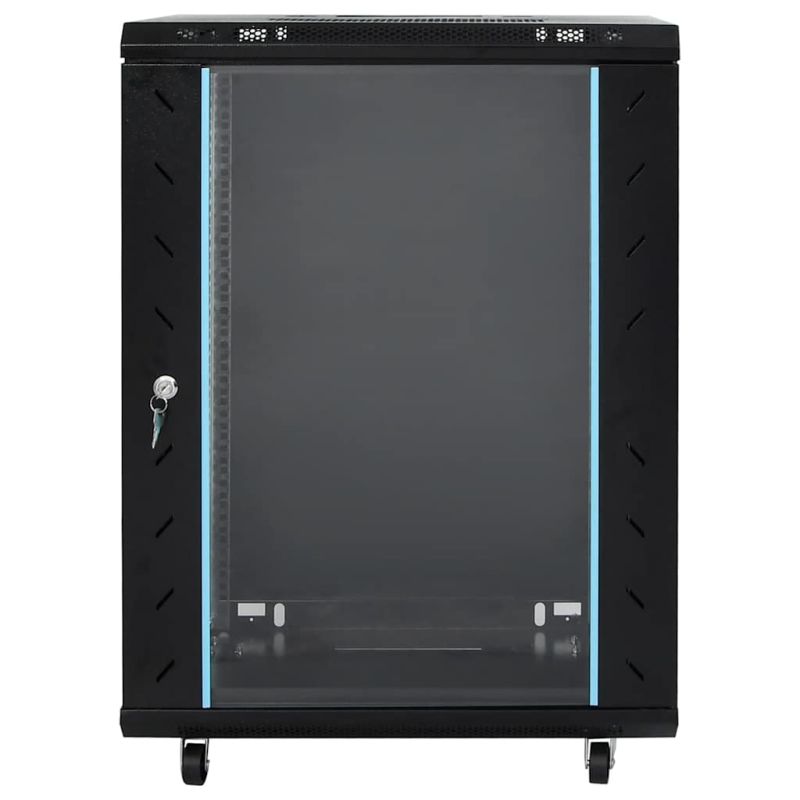 Този 15U мрежов шкаф е проектиран да бъде чудесен помощник за поддържане на вашите мрежови аксесоари в ред. Солидна конструкция: Този шкаф за данни, със солидна конструкция, е изработен от висококачествена студено валцована стомана, което го прави здрав и издръжлив за употреба. Съвместим е със стандартно 19" оборудване.Лесен за поддръжка: Подвижните странични панели улесняват поддръжката на мрежовите аксесоари.Заключващо устройство: Благодарение на включената ключалка и ключ, заключващата се предна врата предотвратява нежелано отваряне и пази вещите в безопасност.Дизайн с въртящи се крачета: Въртящите се крачета улесняват преместването на шкафа.