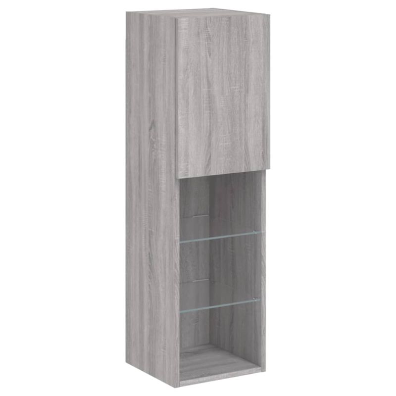 ТВ стенни модули с LED, 4 части, сив сонома, инженерно дърво