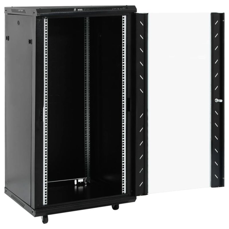 Този 22U сървърен шкаф е предназначен да бъде чудесен помощник в подреждането на вашите мрежови аксесоари. Солидна структура: Този шкаф за данни със солидна структура е изработен от първокласна студеновалцувана стомана, което го прави здрав и издръжлив за използване. Съвместим е с 19" стандартно оборудване.Лесен за поддръжка: Подвижните странични панели улесняват поддръжката на мрежовите аксесоари.Заключващо устройство: Благодарение на включените ключалка и ключ, заключващата се входна врата предотвратява нежелано отваряне и пази съдържанието защитено.