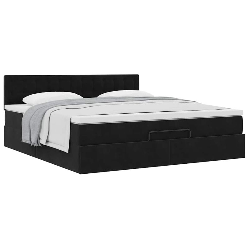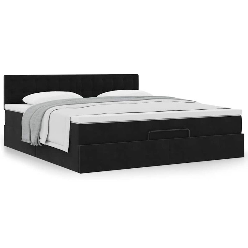 Османска легло с матрак, черно, 180x200 см, кадифе