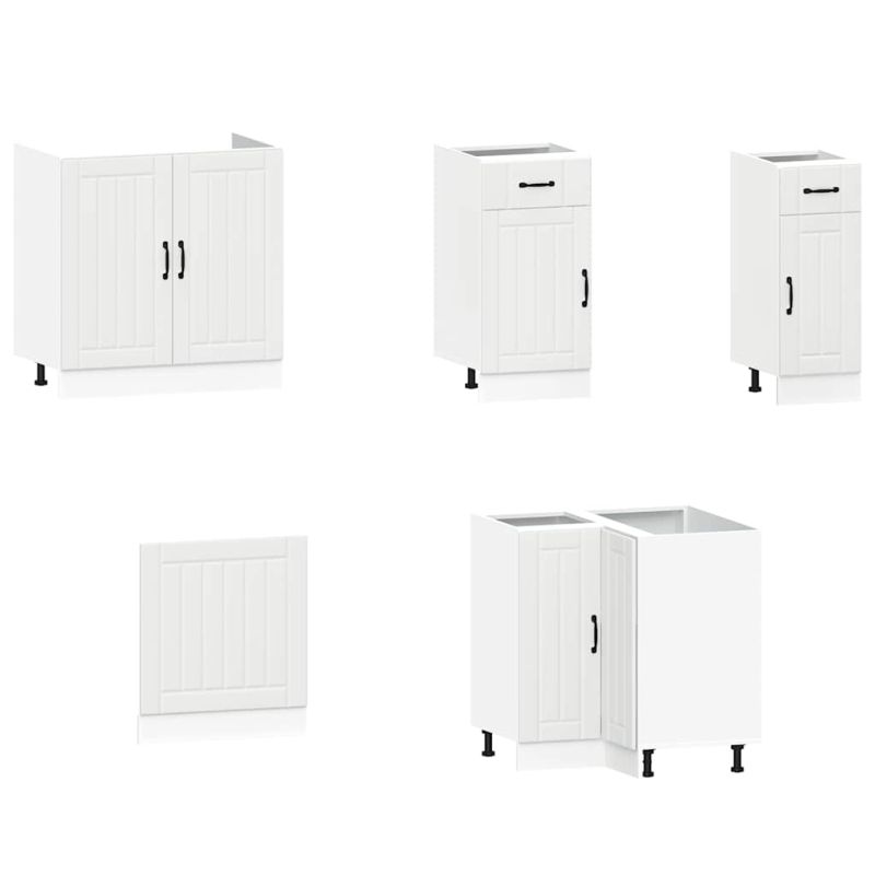 Този комплект кухненски шкафове от 11 части с елегантния си дизайн оптимизира кухненското ви пространство и осигурява достатъчно място за съхранение на вещите ви! Стабилен и издръжлив материал: Инженерната дървесина е издръжлив и стабилен материал с гладка повърхност, която е устойчива на влага, изкривяване и разцепване, което я прави надежден избор за различни проекти.Голямо пространство за съхранение: Комплектът кухненски шкафове има много отделения и предлага достатъчно място за съхранение на купи, чинии, тенджери и други кухненски уреди.Регулируеми крачета: Долните шкафове са снабдени с регулируеми крачета, чиято височина може да се регулира според разположението на кухнята.Лесна поддръжка: Благодарение на гладката си повърхност тези кухненски шкафове се почистват лесно с влажна кърпа и изискват по-малко поддръжка. Внимание:За да предотвратите преобръщане, този продукт трябва да се използва с предоставеното устройство за закрепване на стена. Добре е да се знае:Винт(ове) и щепсел(и) за вътрешността на стената не са включени. Търсете и използвайте винт(ове) и дюбел(и), подходящи за вашите стени. Ако не сте сигурни, потърсете професионална помощ. Прочетете и следвайте внимателно всяка стъпка от инструкциите.Работният плот, мивката и смесителят не са включени в доставката.