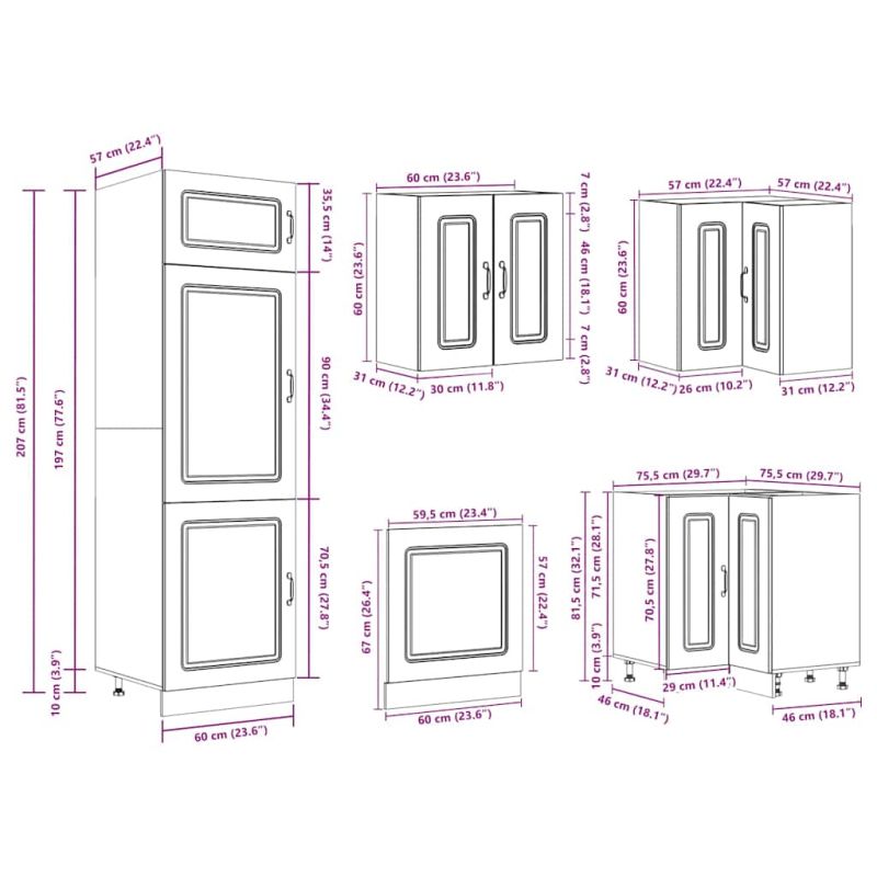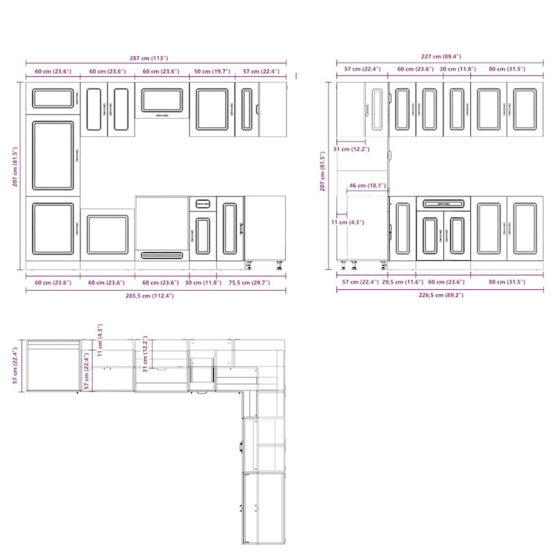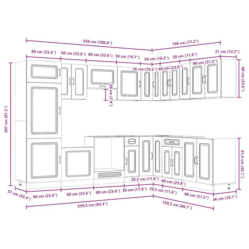 Този комплект кухненски шкафове от 14 части, с елегантния си дизайн, оптимизира кухненското ви пространство и осигурява достатъчно място за съхранение на вашите лични вещи! Стабилен и издръжлив материал: Инженерната дървесина е издръжлив и стабилен материал с гладка повърхност, устойчива на влага, деформация и цепене, което го прави надежден избор за различни проекти.Достатъчно място за съхранение: Комплектът кухненски шкафове има много отделения и предлага достатъчно място за съхранение на купи, чинии, тенджери и други кухненски уреди.Регулируеми крачета: Долните шкафове разполагат с регулируеми крачета, които могат да се регулират по височина, за да отговарят на оформлението на вашата кухня.Лесни за поддръжка: Благодарение на гладката си повърхност, тези кухненски шкафове се почистват лесно с влажна кърпа и изискват по-малко поддръжка. Предупреждение:Този продукт трябва да бъде обезопасен чрез монтиране на работен плот. Подходящ за имайте предвид:Винт(ове) и дюбели за вътрешната част на стената не са включени. Потърсете и използвайте винт(ове) и дюбели, подходящи за вашите стени. Ако не сте сигурни, потърсете професионален съвет. Прочетете и следвайте внимателно всяка стъпка от инструкциите.Плотът, мивката и смесителят не са включени в доставката.