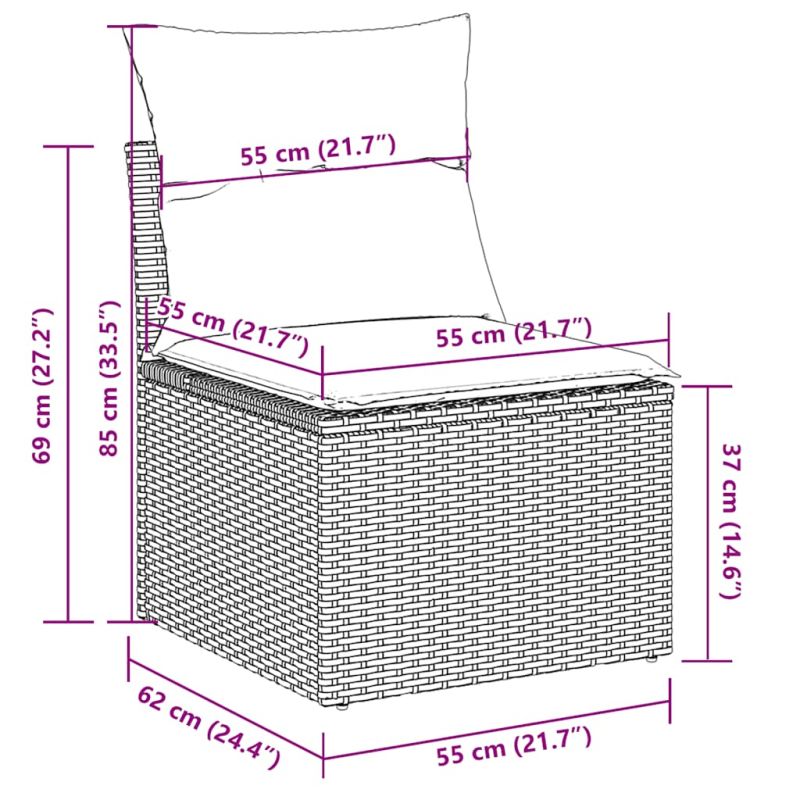 Този градински диван е идеалното допълнение към вашия заден двор, тераса или вътрешен двор, осигурявайки удобно и привлекателно пространство за разговори със семейството и приятелите или просто за почивка и забавление на открито. Издръжлив материал: PE ратан, известен също като полиратан, е здрав синтетичен материал с малко необходима поддръжка, който прилича на естествен ратан. Той е лек, лесен за почистване и често се използва за външни мебели поради своята издръжливост и устойчивост на атмосферни влияния.Функция за съхранение с водоустойчива чанта: Градинската мебел разполага с място за съхранение под седалката, допълнено с водоустойчива чанта за съхранение на възглавници, играчки и други предмети. Вътрешната чанта може да бъде здраво закрепена към външната мебел със закопчалки за допълнителна стабилност.Универсална табуретка за крака: Табуретката е универсална и служи като удобна поставка за крака, когато се излежавате на дивана или като допълнителна седалка във вашата градина.Калъф, който може да се сваля и може да се пере: Тези възглавници за седалки имат подвижни калъфи за лесно пране и поддръжка.Модулен дизайн: Този комплект външни мебели има модулен дизайн, което го прави напълно гъвкав и лесен за преместване, така че можете да създадете персонализирана подредба на външни мебели. Добре е да се знае:За да сте сигурни, че вашите външни мебели ще останат красиви, ви препоръчваме да ги защитите с водоустойчиво покривало.