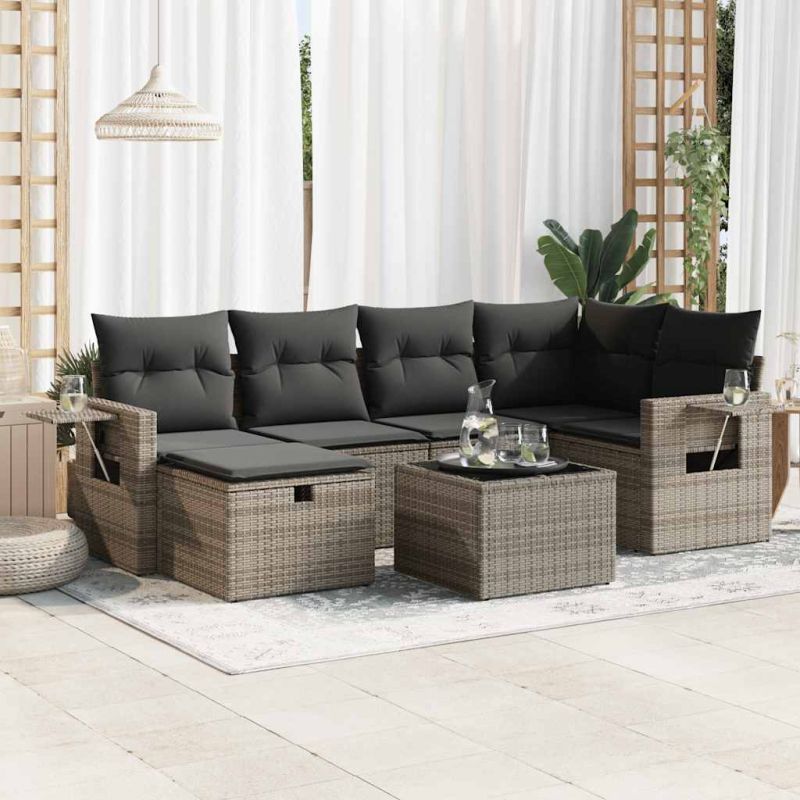 - Купете Градински диван с възглавници, 7 части, полиратан, сив или друг продукт от нашата промоционална секция за да получите 3% отстъпка.
