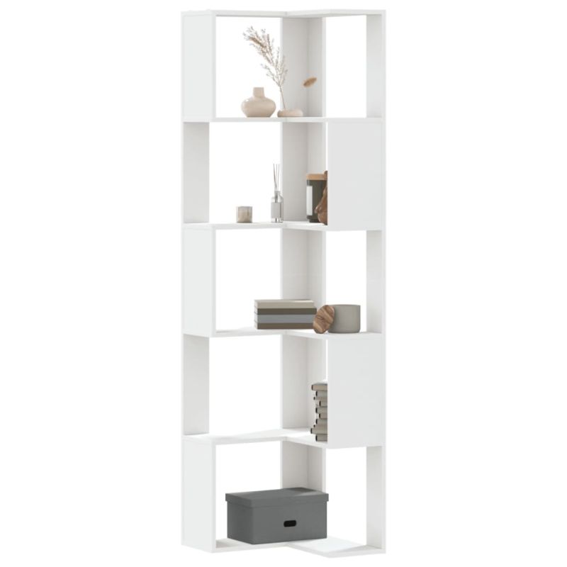 Ъглова етажерка 5 нива бял 50x50x179 см инженерно дърво