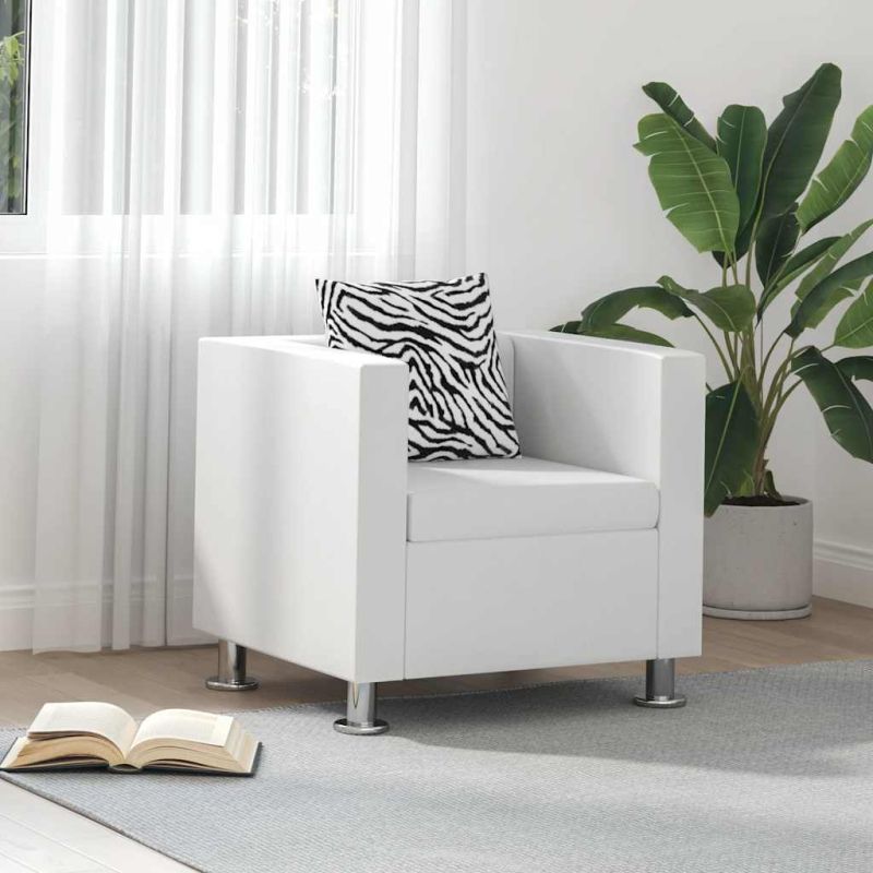 Този фотьойл, изработен с качествена изкуствена кожа, предлага оптимален комфорт при седене. С модерен кубичен дизайн, той е чудесен избор за внасяне на стил и класа във вашия дом. Фотьойлът с кубична форма заема малко място, а чистите и прости линии подхождат на всеки интериор, независимо дали е класически или модерен. Разполага с широко пространство за сядане и плътно подплатени възглавнички, предлагащи изключителен комфорт. Фотьойлът е тапициран с висококачествена и издръжлива изкуствена кожа, която е здрава и лесна за почистване. Семплият му дизайн е подсилен от ефекта на качествени шевове. Фотьойлът с кубична форма има здраво изработена рамка и крака за продължителна издръжливост. Доставката включва 1 брой фотьойл и 1 брой мека възглавница.