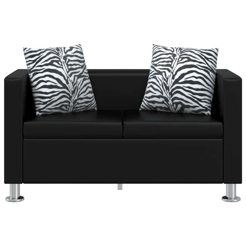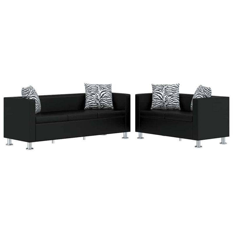 Комплект дивани, 2 и 3-местен, изкуствена кожа, черен