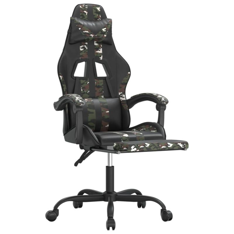 Гейминг стол с опора за крака черно и камуфлаж изкуствена кожа