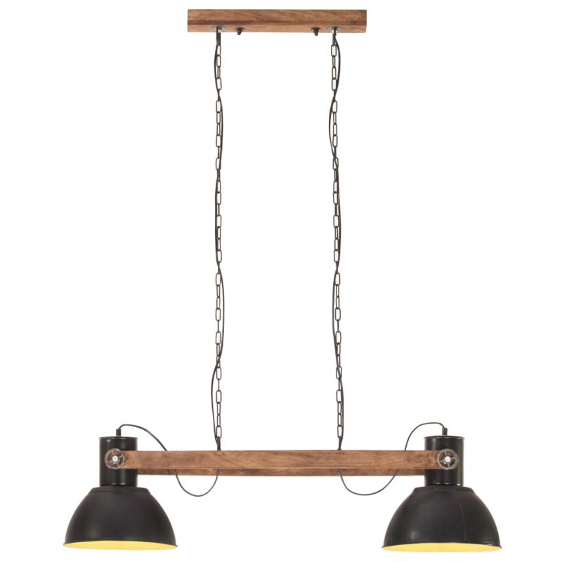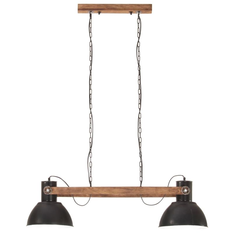 Тази пенделна лампа с обща дължина 109 см и диаметър на всеки абажур 29 см определено ще се превърне в акцент във всекидневната, трапезарията, офиси и др. Железният абажур с черен финиш и масивно мангово дърво с кафяв износен финиш ще се впишат идеално в провинциален или индустриален интериор. Пенделната лампа с 2 абажура е с цокъл Е27 за крушка максимум 25 вата. Можете да изберете и монтирате крушки Е27 с различна цветна температура, създавайки атмосфера на релакс и спокойствие. Моля, обърнете внимание: Това е лампа в индустриален стил с несъвършенства по абажура, което придава идентичността на лампата и я прави уникална с грубия ѝ вид. Крушките не са включени.