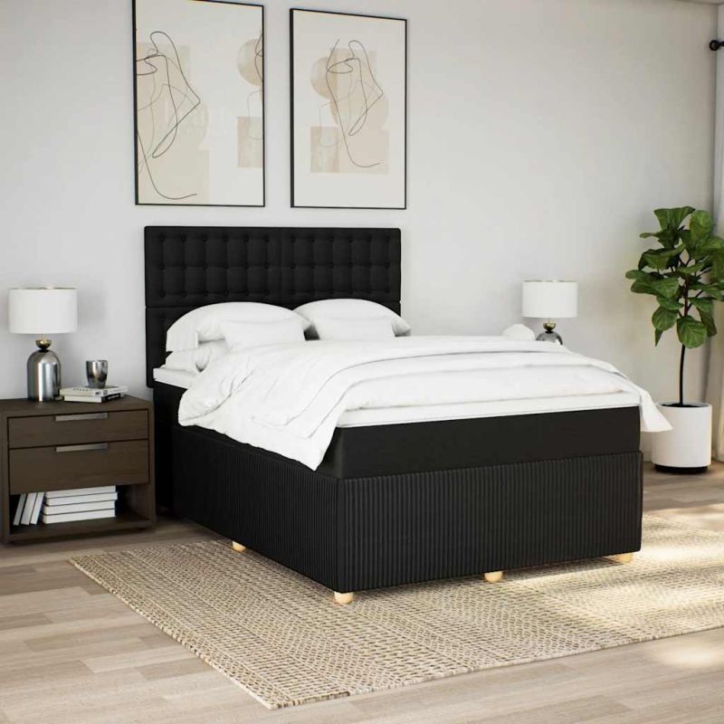 Боксспринг легло с матрак, черно, 140x200 см, плат