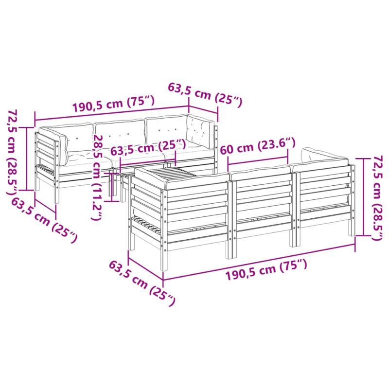 Градински диван от 7 части с възглавници, импрегниран бор