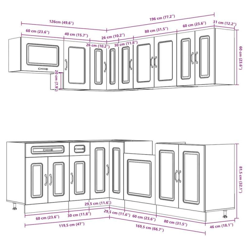 Комплект кухненски шкафове от 11 части Kalmar, инженерно дърво