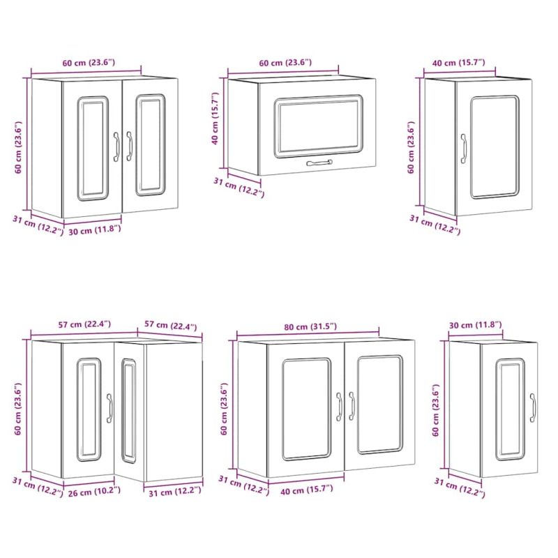• 1 x Кухненски стенен шкаф: 60 x 31 x 60 см (Ш x Г x В)