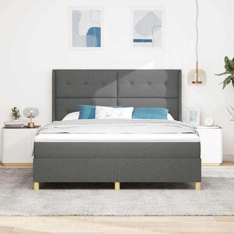 Легло с пружинирана основа Тъмен сив 180 x 200 cm текстил