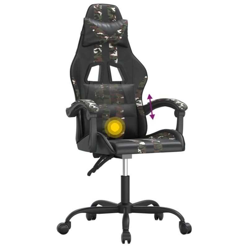 Начало Дом и градина Мебели Столове Геймърски столове Въртящ гейминг стол, черно и камуфлаж, изкуствена кожа