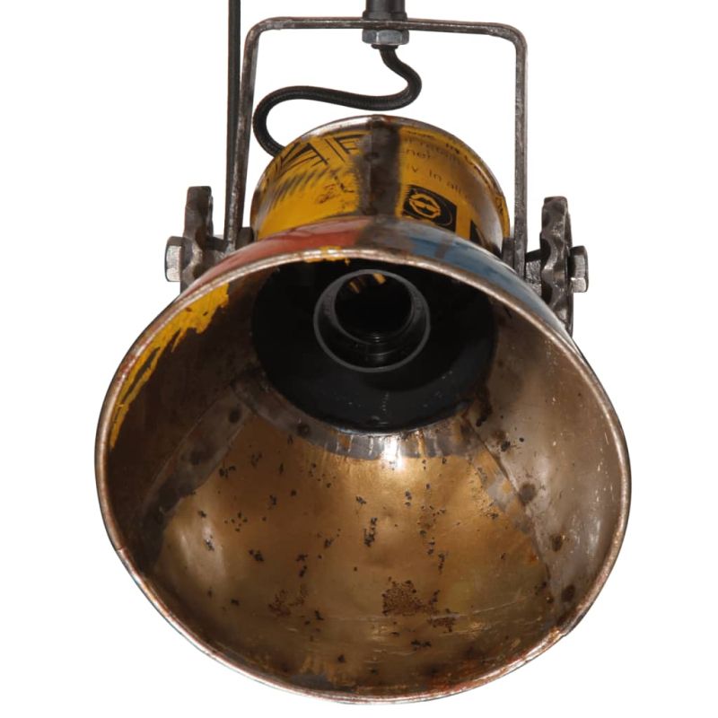 Тази висяща лампа определено е акцент във всекидневната, трапезарията, офисите и др. Здрав материал: Желязото е здрав и твърд материал. То е солиден фаворит в промишленото и мебелното строителство. Ръчно рисувани цветове: Тъй като всяка мебел е ръчно изработена, уникалните цветове варират при всеки продукт. Дизайн с 3 абажура: Лампата с 3 абажура има три цокъла E27 за крушки с максимална мощност 25 вата. Можете да изберете и монтирате крушки Е27 с различна цветна температура, създавайки атмосфера на релакс и спокойствие. Индустриален стил: Железният абажур с регенериран смесен цветен финиш ще се впише перфектно в рустик или индустриален интериор. Добре е да се знае:Това е лампа в индустриален стил с несъвършенства по абажура, което придава идентичността на лампата и я прави уникална с грубия ѝ вид.Крушките не са включени.