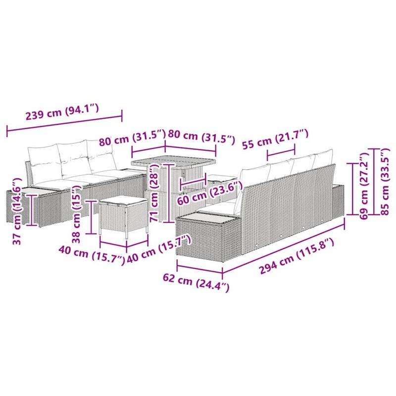 Градински Софа Комплект с възглавница 10 pcs Бежово Полиратан