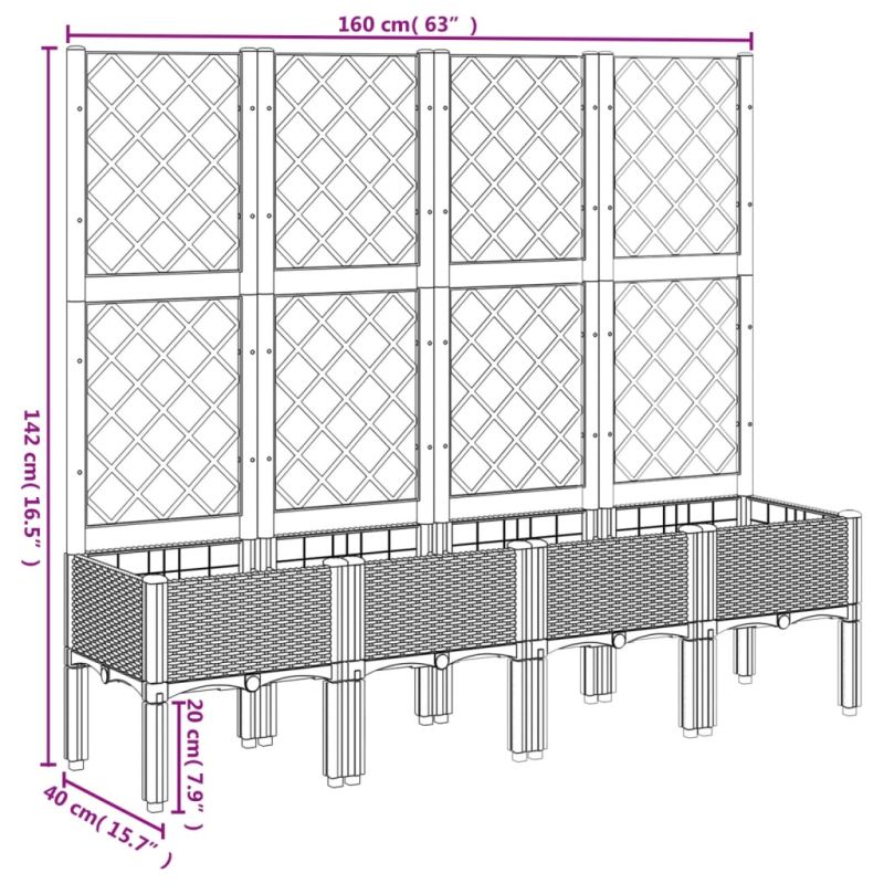 Този градински сандък с пергола е отличен избор за увивни растения във вашата градина, вътрешен двор и тераса. Издръжлив материал: Полипропиленът е популярна пластмаса, която също е един от най-използваните материали при мебелите за открито. Той е лек, здрав и устойчив на удар.Щедър капацитет: Външната кашпа осигурява много място за отглеждане на всички ваши зеленчуци, цветя и други растения.Практичен дизайн: Идеалният долен слой помага за задържане на влагата и позволява лесен дренаж. Освен това интегрираната пергола предлага страхотна опора за отглеждане на увивни растения като домати, грах и рози.Красива визия на ратан: Плантерът за вътрешен двор е проектиран с визия на ратан, внасяйки елегантен чар във вашето жилищно пространство.Издигнат дизайн: Повдигнатият дизайн на тази кутия за саксии може да предпази вашите растения от плевели и вредители.