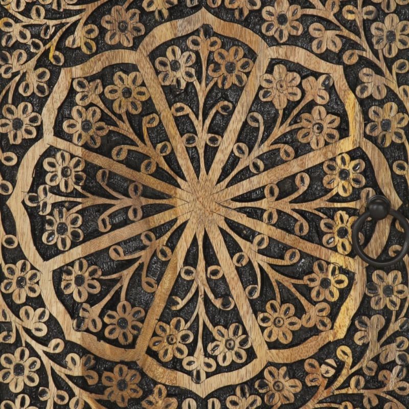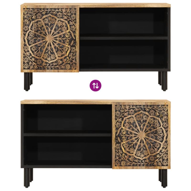 Този здрав ТВ шкаф е проектиран да бъде фокусна точка на вашата стая със своя модерен и практичен дизайн. Масивна мангова дървесина: Масивната дървесина от манго е здрава тропическа дървесина, от която се произвеждат здрави мебели. Красивите ѝ дървесни шарки правят всяка мебел малко по-различна от следващите. Изработена от масивно мангово дърво, поставката за телевизор е издръжлива и стабилна.Просторно място за съхранение: ТВ модулът има достатъчно място за съхранение, което го прави идеално място за прибиране на всички ваши списания, DVD дискове и други предмети.Декоративна функция: Здравата горна част на медийния модул е идеална за нареждане на декоративни предмети, като рамки за снимки и растения.Здрави крака: Железните крака добавят здравината и стабилността на шкафа за мултимедийни устройства.Ретро стил: Този модул за мултимедийни устройства с ръчно издълбани флорални мотиви внася лукса на ретро стила във вашия интериор, като е централната точка на вашата стая. Добре е да се знае:Всеки артикул е уникален с вариации в цветове и зърна. Доставката е на случаен принцип, което гарантира ексклузивността и индивидуалността на вашия продукт.