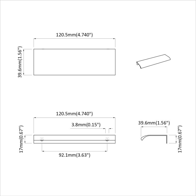 Дръжка 725 pcs Черно 120 x 39.6 x 17 мм Алуминий