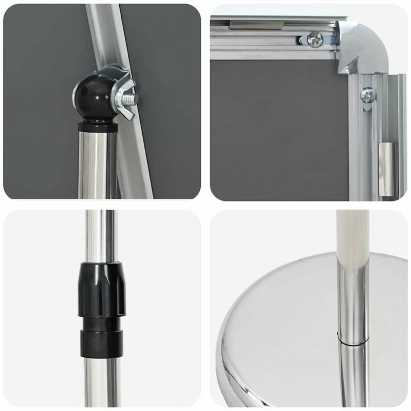 Този модерен щанд за търговски изложения е създаден за гъвкавост и адаптираност в различни ситуации. С елегантния си вид, той добавя визуален чар на презентации и срещи. Регулируемата му височина позволява да се настрои според нуждите на аудиторията, което го прави ценен актив за бизнесите и организаторите на събития. Качествена алуминиева конструкция Този щанд предлага първокласна алуминиева конструкция, която осигурява здравина и стил. Здравата рамка го прави надежден избор за чести събития. Акценти от стомана Вградените стоманени елементи осигуряват стабилност, каквато е нужна при представяния. Те добавят здравина и професионален вид. Механизъм за регулиране на височината Регулирането е лесно с дръжката, позволяваща на потребителите да променят височината за по-ефективно привличане на внимание. Тази гъвкавост помага вашата презентация да се откроява. Сезонно използване на дисплея Проектиран за универсалност, този дисплей е идеален за закрити и открити места, особено през есенните и пролетните месеци, когато търговските изложения са най-популярни. Лесна поддръжка Просто бършете с влажна кърпа, без нужда от сложна грижа, което гарантира дълготрайност.