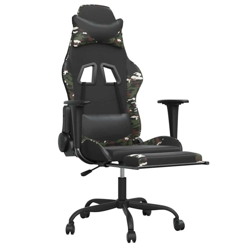 Масажен гейминг стол с опора черно-камуфлаж изкуствена кожа