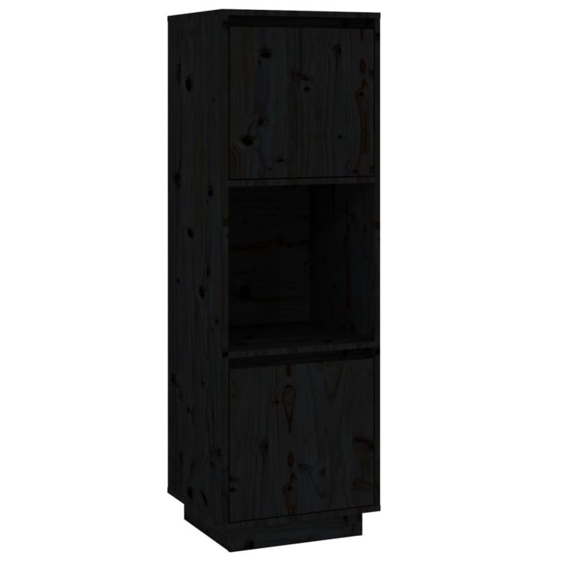 Висок шкаф, черен, 38x35x117 см, борово дърво масив