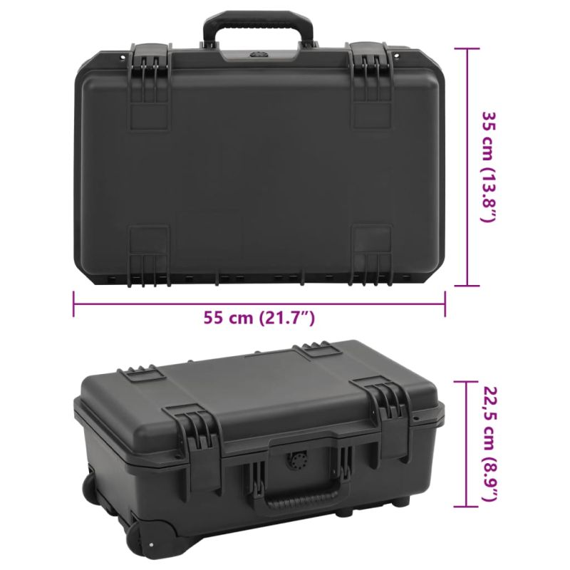 Този удобен калъф за полет е перфектна комбинация от надеждна защита и лесно транспортиране. Идеален е за пътуване с вашите ценности. Универсална защита: Здравата външна обвивка позволява устойчивост на удар, докато здравото уплътнение създава защита от водата. Функцията за заключване на калъфа за пътуване придава допълнителна сигурност.Преносим дизайн: Можете удобно да носите твърдия калъф удобно с практичната му дръжка.Вложка от мека пяна: Транспортната кутия се предлага с подвижни вложки от пяна за удобно и безопасно съхраняване на вашите вещи.Клапан за налягане: Клапанът за налягане може да поддържа баланса между вътрешното и външното налягане, за да помогне на кутията за инструменти да се регулира по-добре при различна надморска височина.Издръжлив материал: Калъфът за полет с пяна е изработен от полипропилен и ABS, което го прави устойчив на корозия и температури. Благодарение на това той предлага дълъг експлоатационен живот.